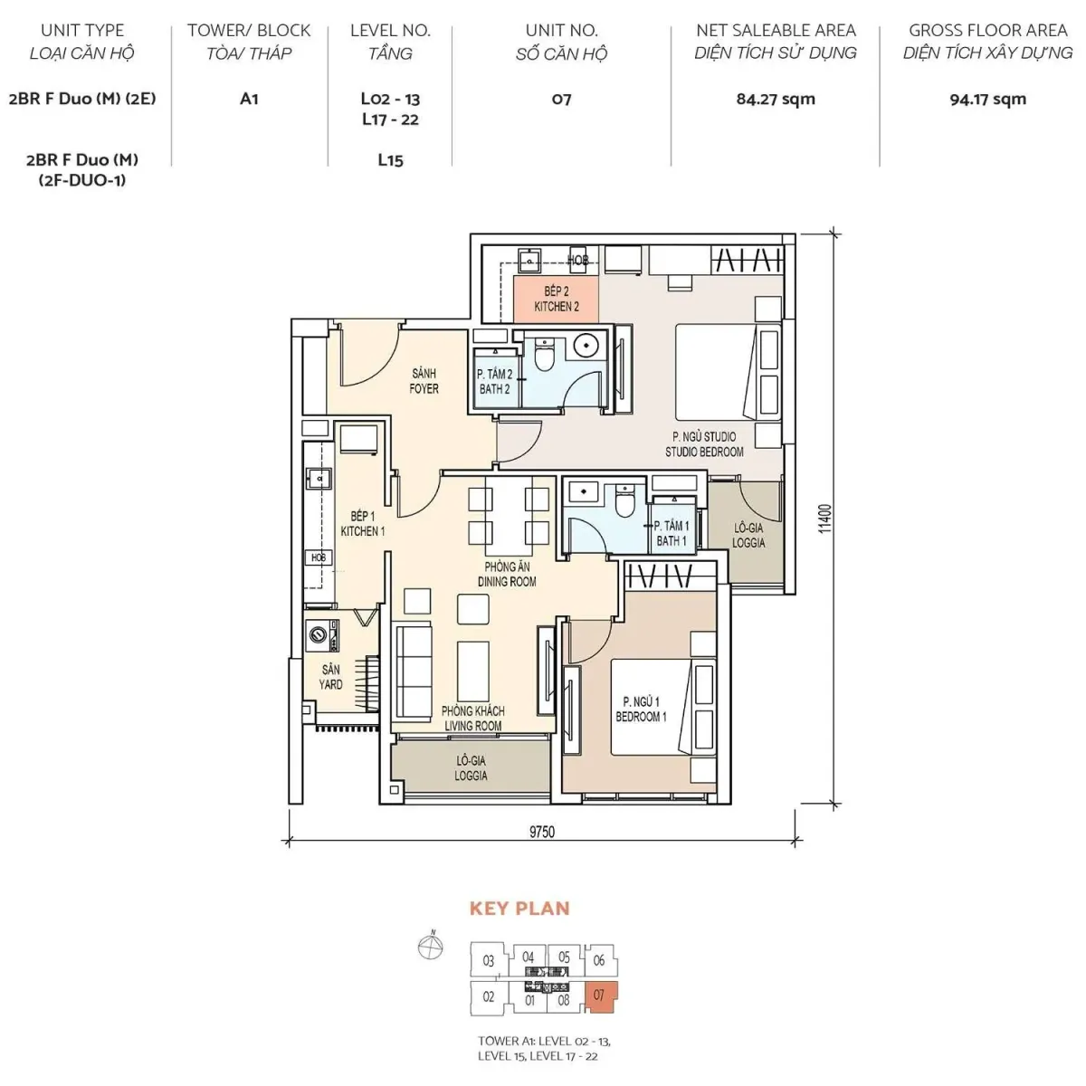 Căn hộ 2 phòng ngủ Duo Key: Diện tích khoảng 84m²