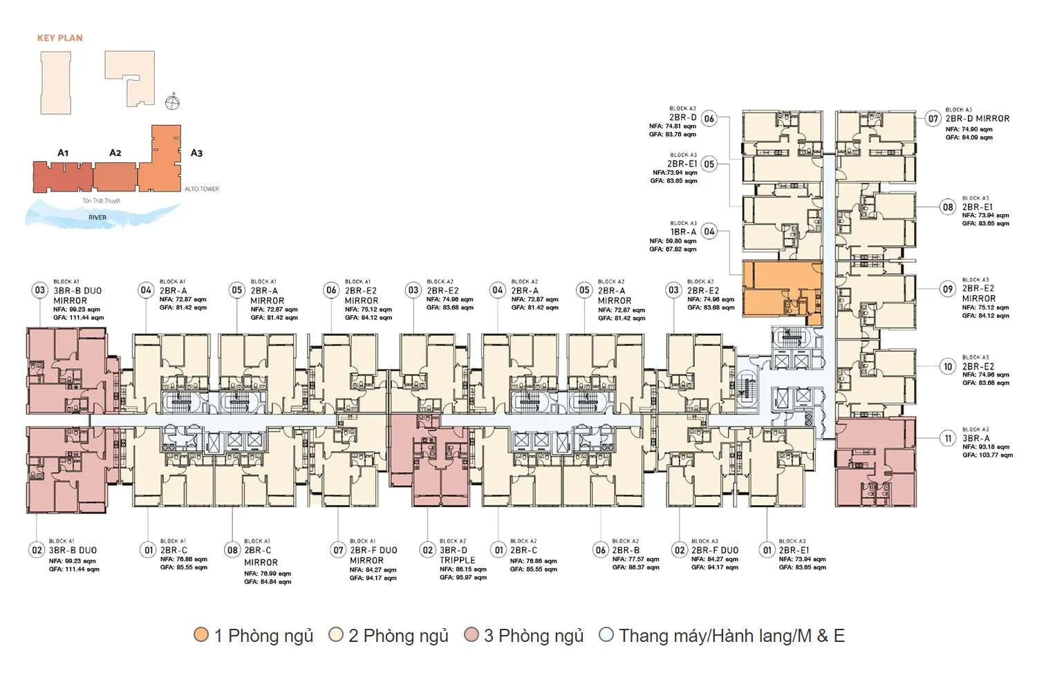 Căn hộ Trio Key: Cung cấp ba không gian sống riêng biệt, lý tưởng cho các gia đình lớn hoặc đầu tư cho thuê.