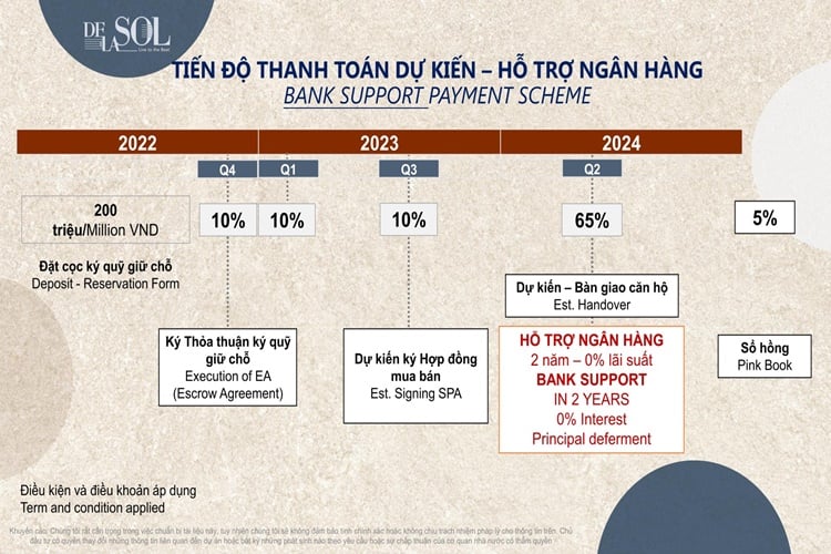 Các ngân hàng đối tác sẽ cung cấp các gói vay ưu đãi cho khách hàng mua căn hộ tại De La Sol Quận 4.