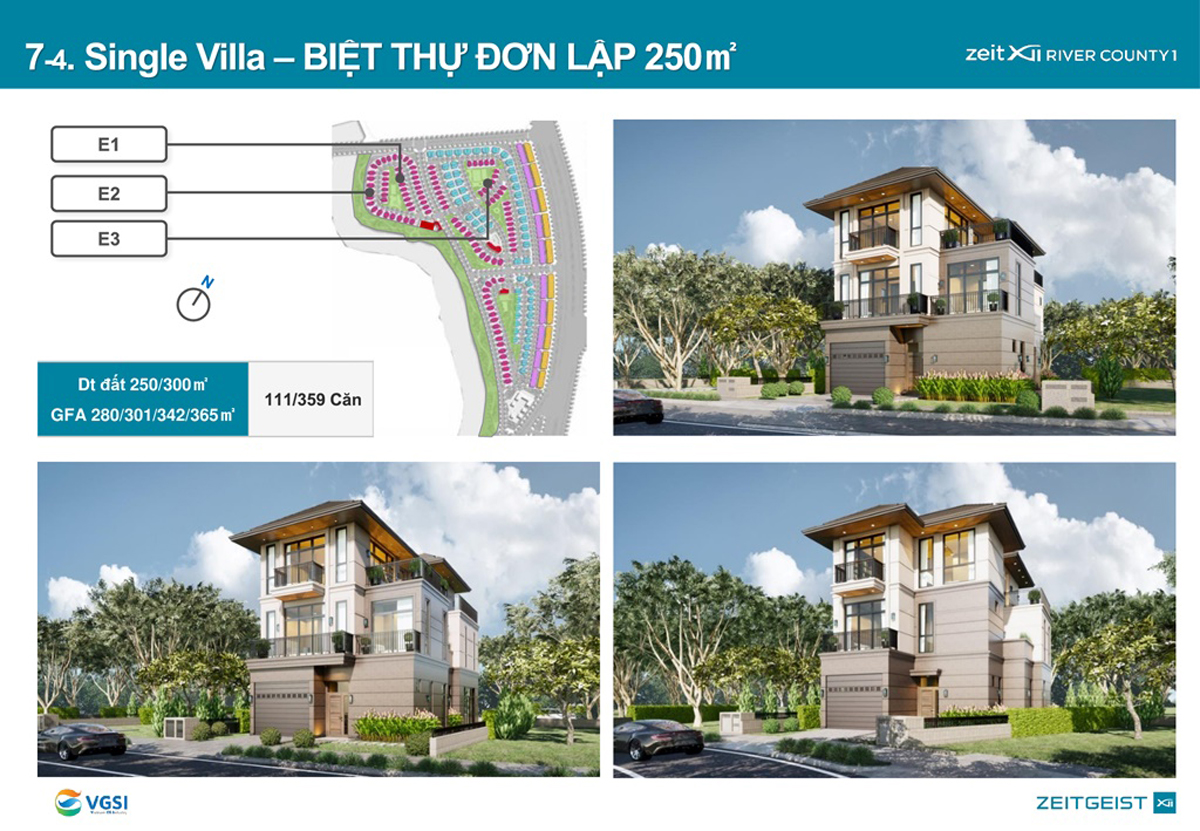 Phân khu 1.1 (Zeit River County 1) đã được bàn giao vào Quý IV/2022 với 359 căn nhà phố, shophouse và biệt thự.