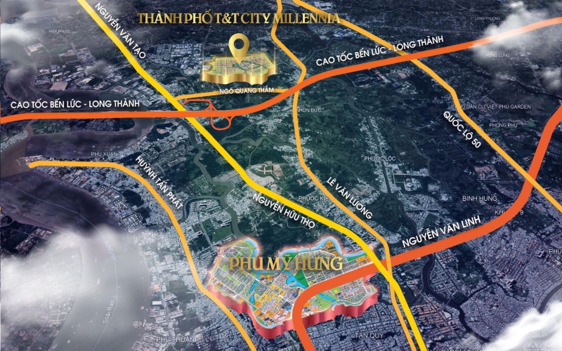 Với vị trí chiến lược, dự án T&T City Millennia Long An dễ dàng tiếp cận hệ thống hạ tầng khu Nam như cao tốc Bến Lức – Long Thành, cảng quốc tế Hiệp Phước, KCN Long Hậu và trong tương lai là sân bay quốc tế Long Thành. Nhờ đó, cư dân và nhà đầu tư được hưởng lợi thế lớn về giao thương, logistics và giá trị bất động sản.